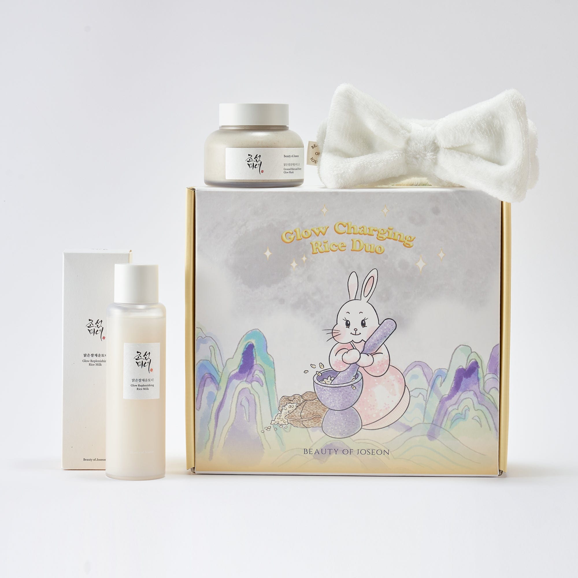 In Korean folklore, the Moon Rabbit pounds rice to create an elixir of longevity, symbolizing abundance and happiness. Inspired by this myth, the Glow Charging Rice Duo, infused with the nourishing power of rice, brings the Moon Rabbit's mystical skincare wisdom to life, offering clear, radiant skin for all.